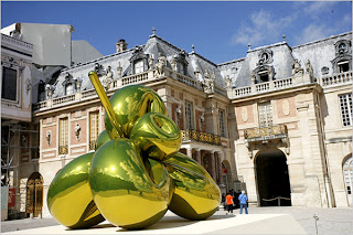 Despite some local resistance, a unique exhibition took place in Versailles since October 2008 until April this year... the american artist Jeff Koons (born in Pennsylvania, 1955), best known for his giant reproductions of banal objects such as balloon animals... invaded the sacred place. It was as surrealistic as it could get, a time warp for sure. Visit the exhibition website at http://www.jeffkoonsversailles.com/en/ and also review the coverage by the New York Times, Art and Design at http://www.nytimes.com/slideshow/2008/09/11/arts/design/20080911_KOONS_SLIDESHOW_index.html